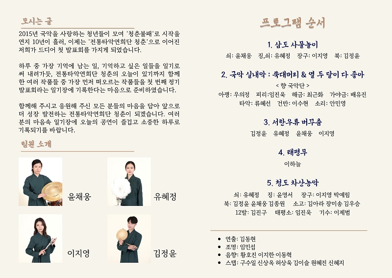공연 문의는 하단의 주최측으로 문의 바랍니다. - 주최 전통타악연희단 청춘