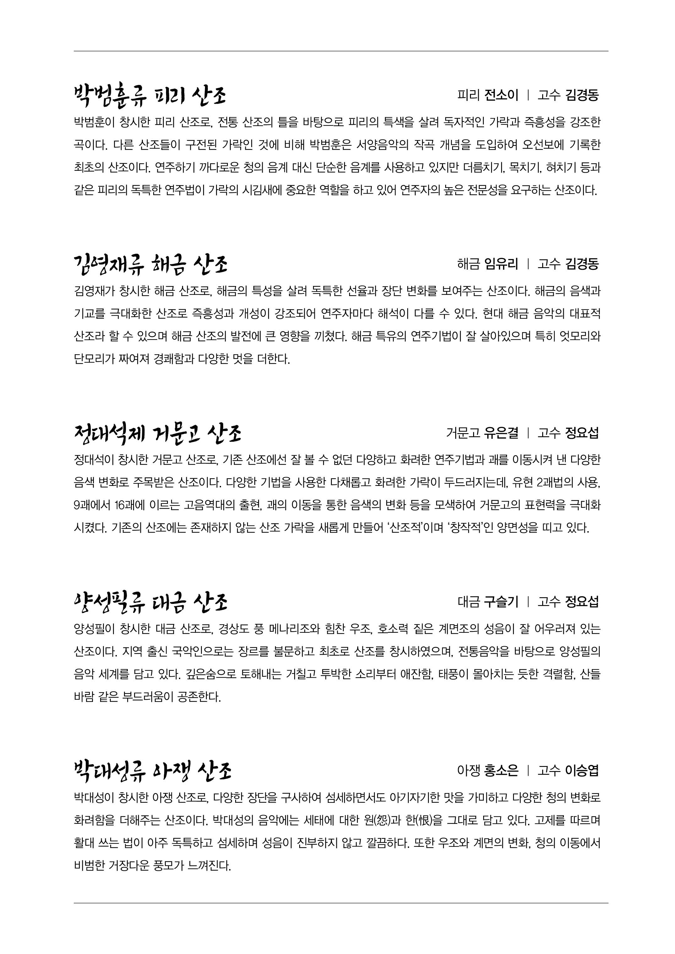 민속 음악에 속하는 기악 독주곡 형태의 하나. 삼남 지방에서 발달하였으며