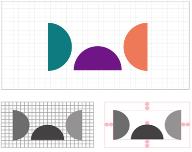 심볼마크는 대구문화예술회관을 대표하는 상징 체계로, 본 매뉴얼의 가이드에 따라 정확하게 사용하여야 합니다. 심볼은 각각 ‘Daegu’ 'Arts’ 'Center’의 앞 글자 D, A, C 를 기하학적 형태로 단순화한 것입니다.