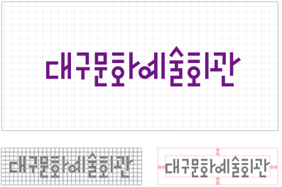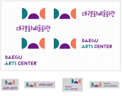 로고는 대구문화예술회관의 정체성을 담아내고자 특별히 디자인되었습니다. 가로, 세로, 사선의 기하학적 로고 타입은 한글의 조형원리를 충실하게 반영하면서도 시대적 트렌드를 잘 담아내고 있습니다 로고타입은 임의로 변경되지 않아야 하며 특히 심볼과 올바른 조합, 균형, 비율을 유지하며 정확한사용이 필요합니다. 독특한 개성을 가진 로고타입은 심볼과 별도로 분리해서 사용 가능하지만 이 경우 세심한 주의가 필요합니다.